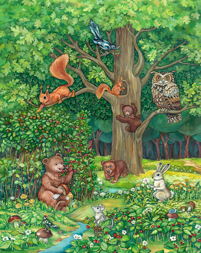 Фотообои Живописное дерево с животными